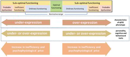 Considering that different qEEG oscillations reflect functionally different components of information processing acting on various temporal scales [140,141], it is possible to map qEEG oscillations onto specific mental and/or behavioral states [151]. qEEG oscillations from the same frequency band may express different functions depending on the conditions they are involved in [152]. This seems biologically plausible: qEEG oscillatory functional diversity creates a rich repertoire of brain activity that can meet the complex computational and communicational demands of the brain during healthy and pathological conditions.