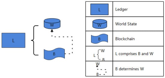 The data stored in Hyperledger Fabric is composed of four parts: world state, block index, ledger data, and historical state (optional). The two most important components of the ledger, which together from the blockchain, are the world state and ledger data. The specific architecture is shown in Figure 1.