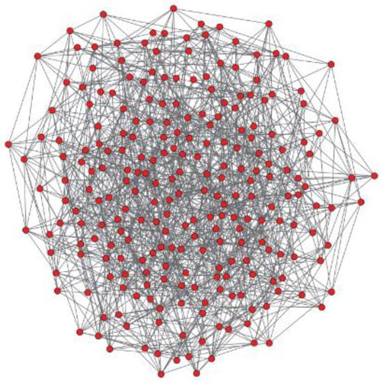The experiments are conducted to simulate the storage efficiency and communication efficiency of this scheme. During the experiments, a small-world network with 100 node sizes (dim = 5, size = 3, nei = 1, p = 0.1) was created and the network was divided into four clusters, each of which is set to s = ⌈2n/3⌉ = 17. That is, s is rounded up by two-thirds of the number of nodes. The structure of the small-world network is shown in Figure 5.