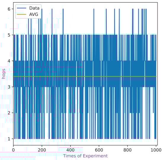 In the experiment, using the results of the previous experiments, a node was randomly selected to query a particular transaction. If the node contains the transaction, the network communication overhead of this query is recorded as 1; otherwise, up to n/3 neighbors are randomly selected as the next targets to deliver the query request. If the query result is obtained in one hop, the network communication overhead is added by 1. Follow this procedure to execute 1000 queries and record the statistical analysis of the network communication overhead required to obtain the result for each query.