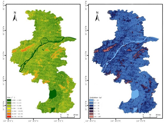The high-precision DEM data are processed to establish a gradient grading layer and a terrain undulation grading layer, as shown in Figure 2.