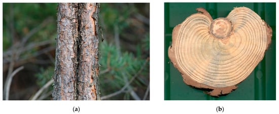 The Scots pine is the most common and, at the same time, the most important forest-forming species in Poland. It has crucial economic and natural importance. The Scots pine extends over almost the entire area of this country. It makes up 62% of the growing stock and 60% of the species composition of forests [38]. The high percentage share of the pine results from habitat conditions [66]. The forest assessment conducted between 2017 and 2021 revealed that more than 102,000 ha of Polish forests were damaged by animals [67]. Debarking is observed in many tree species, but the pine domination determines the use of pines by animals as the principal fodder source, which leads to the appearance of this damage. Pine stands constitute almost 53% of all the damaged tree stands, with 4% of damage caused by animals [67].