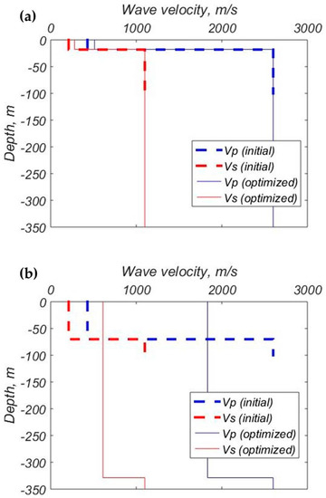 The optimized velocity profiles (a) at the St3 site; (b) at the Typ2 site.