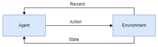 Reinforcement learning is that the agent learns in the way of “trial and error” [29], and it interacts with the environment by sending out actions so as to obtain corresponding rewards or punishments. If you receive rewards, it will encourage you to continue this action, and if you receive punishments, you will avoid continuing this action. The goal of reinforcement learning is to let the agent continue to try and learn and finally obtain the maximum reward. Figure 2 shows the main components of reinforcement learning, including learning subject, action, environment, state and reward.