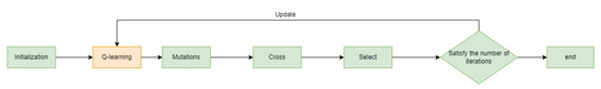 In Q-learning, actions will affect the income, the state describes whether the individual mutates successfully, and the reward value reflects the impact of the action. F can be obtained [21] by the following Equation (21):