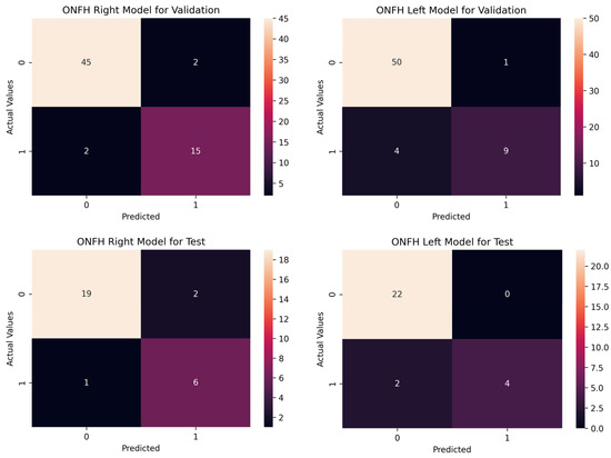 Confusion matrix for osteonecrosis of the femoral head (ONFH) right and left models.