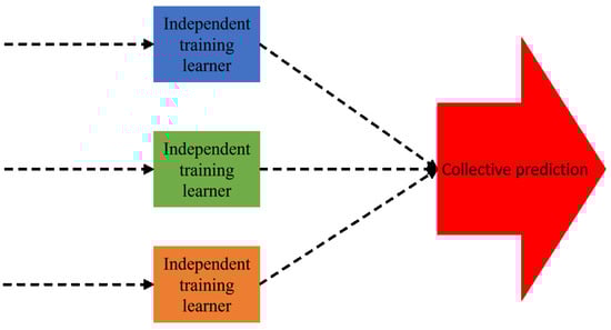 Ensemble learning is growing in popularity due to its variability and efficiency [8,9]. Ensemble learning is composed of multiple weaker models that are independently trained; then, the collective prediction will be more accurate. The ensemble approach can simultaneously consist of several learners applying unsupervised algorithms, supervised algorithms, and so forth, in distinct ways, e.g., sequence, parallel, and mixture. Figure 1 shows a simple instance of ensemble learning with the parallel type.