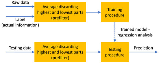 Next, the prefilter was used to discard the highest and lowest parts from the raw data and then average them before entering the training procedure. After the training procedure was finished, this trained model was utilized in the testing procedure to evaluate the performance, including accuracy and stability. Here, the trained model was only regression analysis [5].