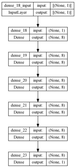 Here, most importantly, MLP can be applied to complex nonlinear problems. In [5], the authors illustrated that the white Gaussian noise may not fit the uncertain measurement well in practice. Thus, they utilized the concept of linear and polynomial regression to refine the distance information. However, it is obvious that the refinement of the UWB positioning topic is not a linear or simple polynomial issue due to the effects of signal attenuation and multipath propagation [14,15]. Hence, this is another motivation for us to design a new architecture including ANN to refine the distance information further.