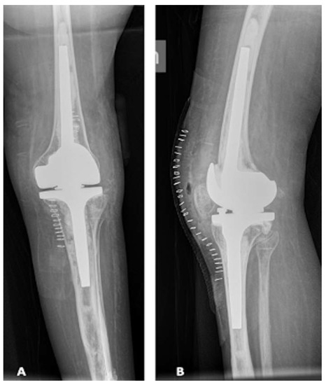 - Rosso, F.; Cottino, U.; Dettoni, F.; Bruzzone, M.; Bonasia, D.E.; Rossi, R. Revision total knee arthroplasty (TKA): Mid-term outcomes and bone loss/quality evaluation and treatment. J. Orthop. Surg. Res. 2019, 14, 280. [Google Scholar] [CrossRef]