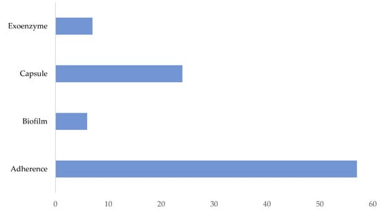 Distribution of virulence genes (VG) found in Enterococcus spp. per VG category function.
