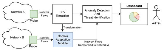 - Domain adaptation module, which is intended to bring the traffic coming from a different network onto a feature space where the anomaly detection and threat classification were trained,