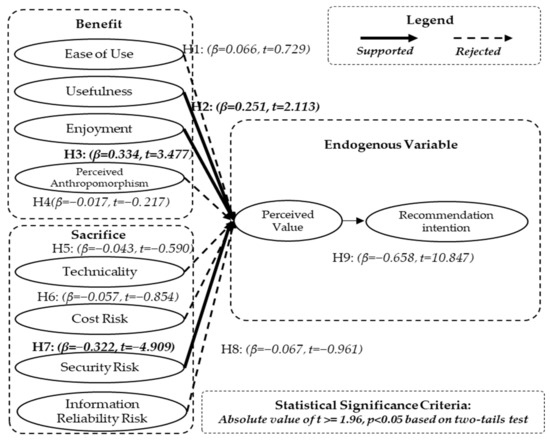 Finally, in Table 7, the hypothesis (H9) was adopted that perceived value would have a positive effect on recommendation intention. In other words, it is concluded that the currently used artificial intelligence speaker provides usefulness and enjoyment, has no technical difficulties and costs, and has reliable information. However, it can be seen that security threats need improvement.