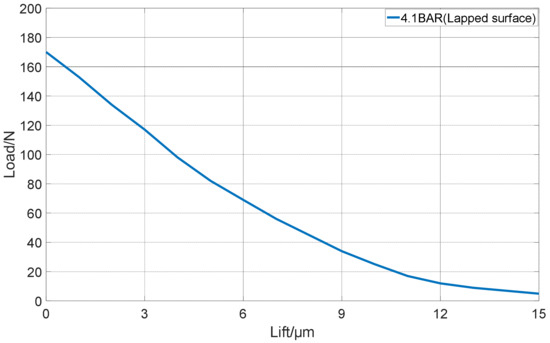 Relations between load and lift for a Ø25 mm pad.