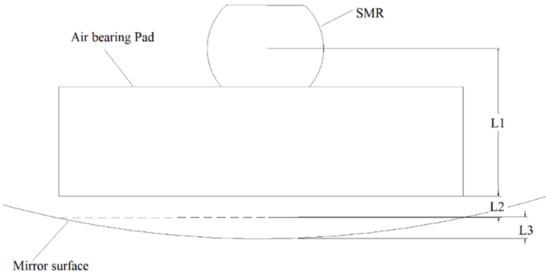 - L1, the distance between the cube corner retroreflector and the bearing’s floating surface. This length is a constant value and can be calibrated by measuring a plane with an SMR and non-contact probe (without air supply) respectively and calculating the distance between the fitting planes.