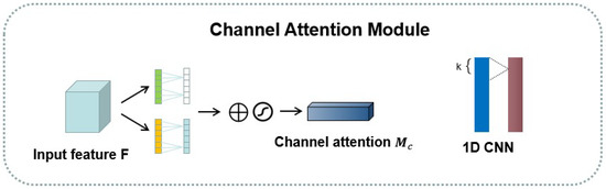 wherein represents the Sigmoid function, and represents the one-dimensional convolution operation with a convolution kernel size of k. The value of k is adaptively determined by the number of channels. The improved channel attention model is shown in Figure 8. Because of the parameter-sharing property of the convolution operation, the introduction of one-dimensional convolution can reduce the parameters of the channel attention module and improve the overall running efficiency of the model.