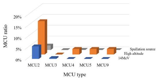 MCU ratios of 14 MeV neutron, high-altitude and spallation source test.