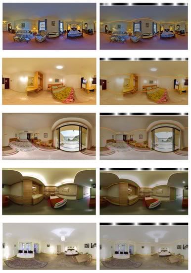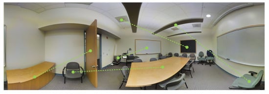 - Pintore, G.; Agus, M.; Gobbetti, E. AtlantaNet: Inferring the 3D Indoor Layout from a Single 360∘ Image Beyond the Manhattan World Assumption. In Proceedings of the European Conference on Computer Vision, Glasgow, UK, 23–28 August 2020; Springer: Berlin/Heidelberg, Germany, 2020; pp. 432–448. [Google Scholar]