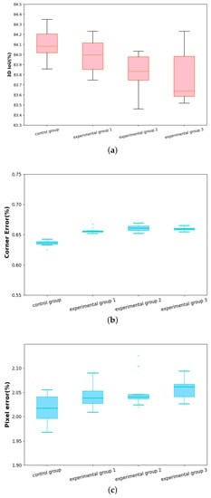 We performed an ablation study to verify the performance of MreNet. First, we took the complete version of MreNet as the control group, MreNet without the enhancement layer as experimental group 1, MreNet without the feature connection as experimental group 2 and MreNet without the sparse attention layer as experimental group 3. We trained and tested them on the PanoContext dataset + Stanford-2D3D. As shown in Figure 5, in terms of 3D IoU, the experimental groups 1, 2 and 3 achieved 83.88%, 83.82% and 83.77%, respectively, while the control group achieved 84.09%. Concerning the corner error, the experimental groups 1, 2 and 3 reached 0.657%, 0.659% and 0.661%, respectively, while the control group achieved 0.639%. Regarding the pixel error, the experimental groups 1, 2 and 3 yielded 2.047%, 2.049% and 2.051%, respectively, while the control group had a pixel error of 2.030%. We also conducted some statistical hypothesis tests. For the two-sample heteroscedastic assumption-test, the 3D IoU result for the control group with experimental groups 1, 2 and 3 was 0.0051, 0.0043 and 0.0049, respectively. The results for corner errors were 0.0008, 0.004 and 0.002. The results for pixel error were 0.043, 0.029 and 0.0031.
