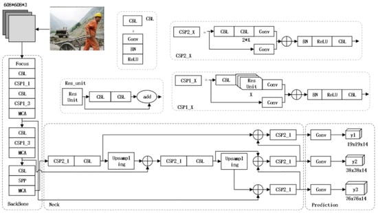 In the small object detection task, the collected small target feature information is also gradually weakened as the number of network layers increases gradually, so it is easy to cause the algorithm to err and miss the detection of small targets. However, the MCA module uses the global average pooling and the remaining frequency components to enhance the features in the feature map so that the network strengthens the overlooked point learning of the target features during the training process. In this paper, the MCA module is embedded in the backbone network to enrich the network acquisition of features. Figure 2 shows the YOLOV5 structure diagram of the MCA module added.