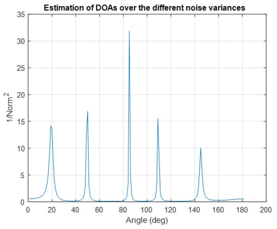 Through the property of orthogonality between the directional vectors of the signals with the vectors constituting the noise subspace, the null points, i.e., the arrival directions, are thus determined [16,17,18].