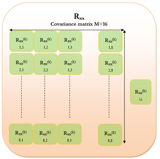 The idea here is to divide the covariance matrix Equation (23) into sub-matrices of element dimensions the sub-matrix is presented by Equation (24).