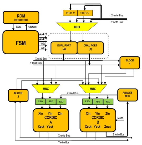 - Bravo, I.; Mazo, M.; Lazaro, J.L.; Jimenez, P.; Gardel, A.; Marron, M. Novel HW Architecture Based on FPGAs Oriented to Solve the Eigen Problem. IEEE Trans. Very Large Scale Integr. (VLSI) Syst. 2008, 16, 1722–1725. [Google Scholar] [CrossRef]