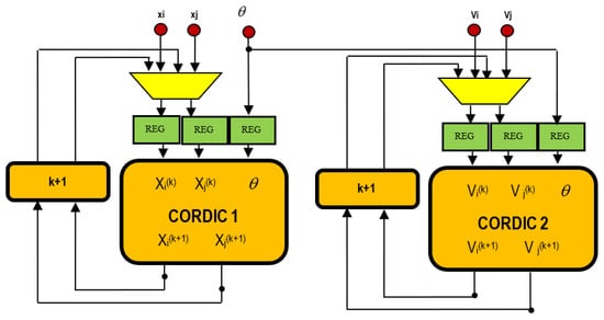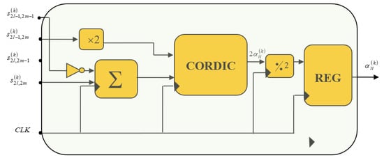 - Andraka, R. A Survey of CORDIC Algorithms for FPGA Based Computers. In Proceedings of the 1998 ACM/SIGDA Sixth International Symposium on Field Programmable Gate Arrays, FPGA 1998, Monterey, CA, USA, 22–24 February 1998; Cong, J., Kaptanoglu, S., Eds.; ACM: New York, NY, USA, 1998; pp. 191–200. [Google Scholar] [CrossRef]