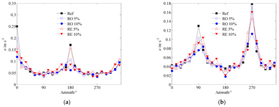 Standard deviations of accelerations in different azimuths: (a) x-direction. (b) y-direction.