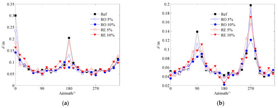 Standard deviations of displacements in different azimuths: (a) x-direction. (b) y-direction.
