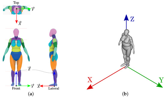 - Chen, Y.; Song, Z.; Xu, W.; Martin, R.R.; Cheng, Z.Q. Parametric 3D modeling of a symmetric human body. Comput. Graph. 2019, 81, 52–60. [Google Scholar] [CrossRef]