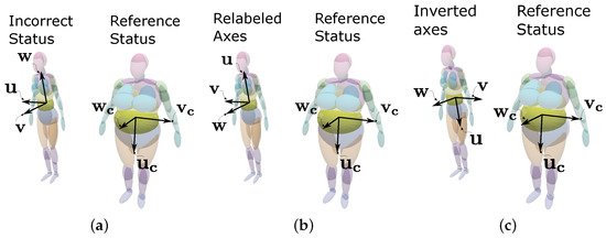 - Reference [27] manually defines feature points on three orthogonal pictures of a person. From the feature points, a silhouette is extracted and a skeleton is automatically fitted by applying affine transformations and Barycentric interpolation. A template model’s skin (surface) is then deformed through piecewise affine transformations and 2D-to-3D mapping with the skeleton and silhouette information.