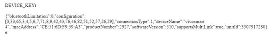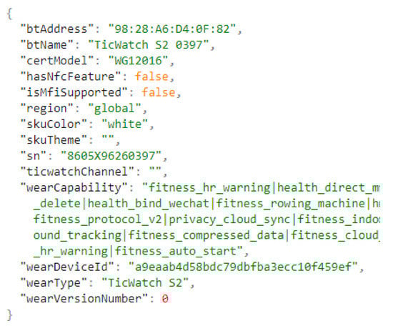 Information about the Bluetooth devices that were paired with the smartphone was recovered from the \files\ticpod_pairing folder. This folder contains four files which record the Bluetooth MAC addresses and device names of devices that were paired with the smartphone. In our case, the first file recorded all three Bluetooth MAC addresses for the three fitness devices that we used in the study (i.e., Amazon Halo Band, Garmin vívosmart® 4, and TicWatch S2) and the next three files each held a single Bluetooth device name corresponding to a MAC address in the first file, in the same order.