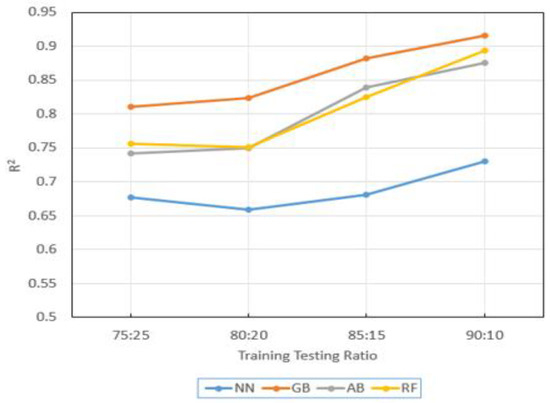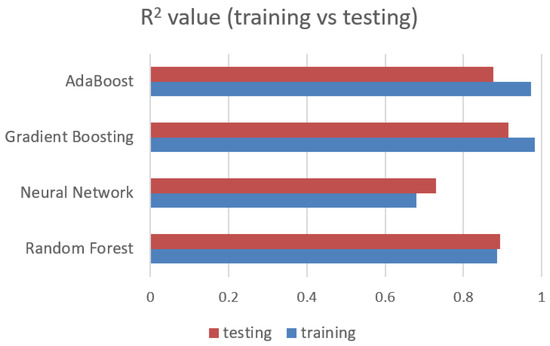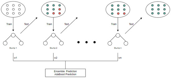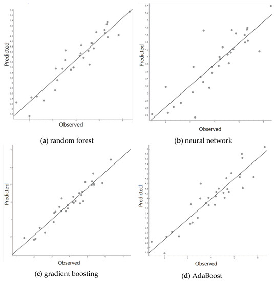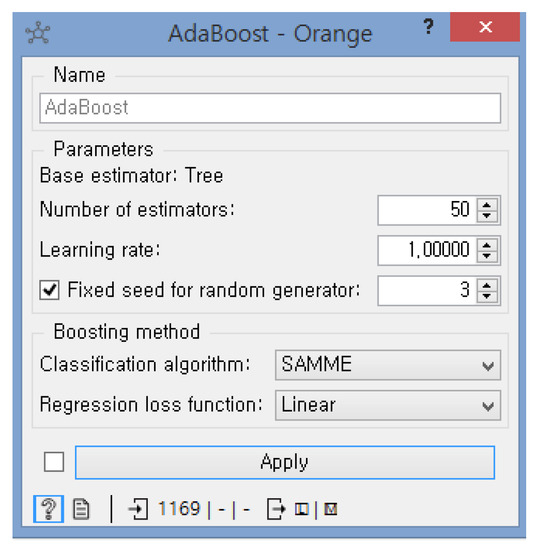 Figure 11. The learning rate is set to 1. It determines to what extent the newly acquired information will override the old information. The number of 1 means that the agent considers only the most recent information. The number of 3 is set as a fixed seed to enable reproduction of the results. We decided to use SAMME as the classification algorithm, which updates the base estimator’s weights with classification results. Among the regression loss function options, the linear option is selected.