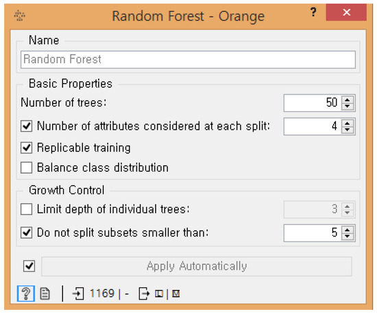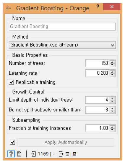 Figure 11. Unfortunately, the Orange 3 software used for this study does not have an optimizer function that automatically finds the hyper-parameters of the model. Thus, starting with the default parameters provided by Orange 3, the authors manually adjusted the parameters to generate feasible output for each ML model.