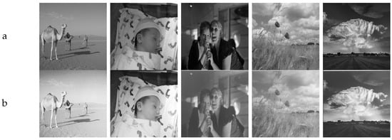 Figure 7. All images used in the experiment were colored, and the proposed watermarking algorithm uses gray-scale images as input images. Therefore, we converted the color image data set of COCO 2014 into gray scale, which was used as the input of the test, and fed it into the moiré network to obtain the texture map with moiré, as shown