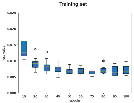 is the mean square deviation between the estimated and actual values. It is a positive value and decreases as the error approaches zero because the value is calculated from the square of the Euclidean distance. The detailed training loss values of the training and validation dataset of the moiré network are presented in