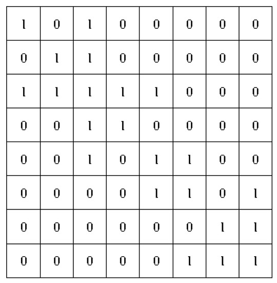 where denotes the edge between node and in the dependency tree or 0 if no edge exists. According to Equation (1), we can transform the dependency tree of Figure 2 into an adjacency matrix, as shown in Figure 3.