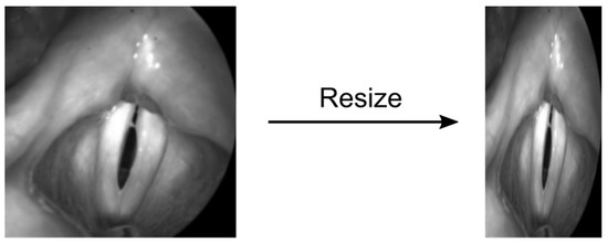 The U-Net within the TensorFlow framework requires standardized image sizes: To meet the internal pooling operations of the U-Net, Gomez et al. [30] resized the training and validation images to 512 × 256 pixels (Resize Method). This 2:1 proportion was chosen because it approximates the glottis dimensions. However, this often yielded an undesired deformation of the images resulting in unnatural glottis geometry (Figure 5). Hence, we now suggest a different method called the Region of Interest (ROI) method.