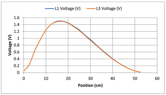 L1 and L3 sensors’ voltage reading in terms of load position.