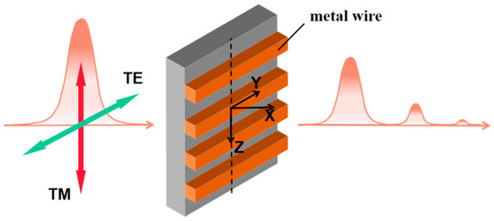 Figure 2 is a schematic diagram of the principle of rectangular subwavelength metal grating. The light wave incident on the grating can be decomposed into transverse magnetic wave (TM wave) and transverse electric wave (TE wave), which are perpendicular to each other. TM wave is the component whose vibration direction is perpendicular to the grating direction. The TE wave is the component whose vibration direction is parallel to the grating direction. The main transmittance is the transmittance of the TM wave.