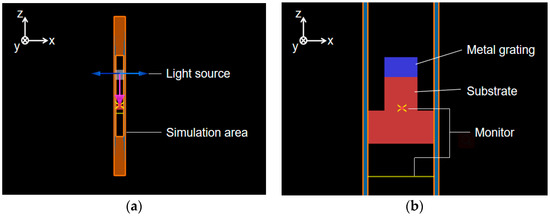 The simulation software Lumechanical FDTD is used for simulation, and the wavelength range of incident light is 8~12 μm. Figure 3 shows the simulation structure of a periodic polarization grating. When the incident light is the normal incidence, the boundary conditions are set as periodic boundary conditions.