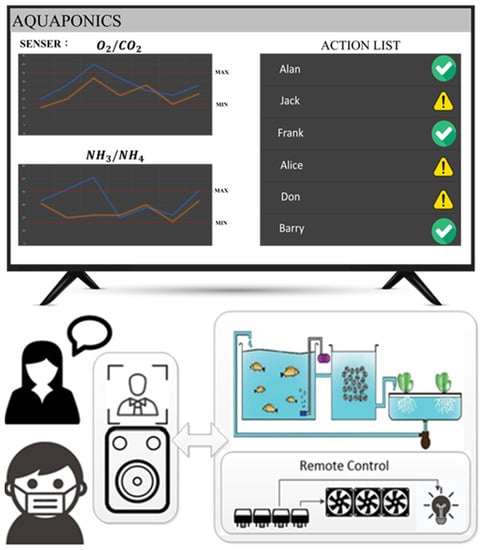 The results of this study can be used to promote effective utilization of environmental resources through aquaponics systems for the development of an environment that incorporates the concept of green care to enable green treatment and care for the elderly, the intellectually disabled, the chronically ill and the mentally handicapped, integrating human–computer interaction design with the proposed SGCS. The elderly population is encouraged to engage with the natural environment to perform physical care and rehabilitation in order to achieve the goals of maintaining physical health and providing psychological comfort. In addition, to solve the problem of the elderly’s inability to operate information interfaces, the intelligent voice control system (IVCS) proposed by Wang and others [7] is integrated into the design of the system proposed in this study. The system uses mobile devices to communicate directly via natural language to achieve automatic voice control and guided decision control.