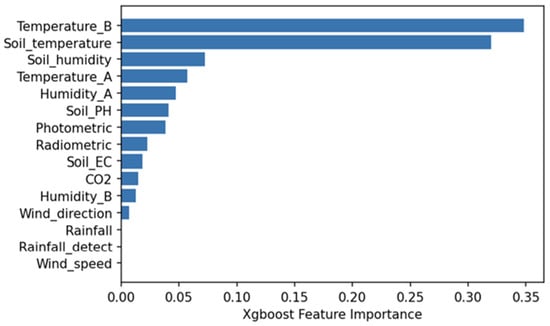 A wide variety of environmental factors affects plant growth. Monitoring can enable the effective collection and analysis of planting environmental factors, helping to identify and improve the environmental factors that interfere with plant growth. To solve the problem of planting, in this study, we consulted with aquaponics operators to summarize the sensing equipment needed to monitor breeding and planting environmental factors (see Table 1 and Figure 6). The environmental monitoring system configures the sensing equipment in the aquaponics system, and the data collected by the sensing equipment provides the environmental data analysis model of the back-end system for analysis and processing. Compared with Gaussian NB, KNN, linear support vector classification (SVC), DT, AdaBoost, RF, and algorithms such as extra trees and gradient boost (GDB), the XGBoost algorithm is superior in terms of classification and decision accuracy. The gradient boost decision tree (GBDT) algorithm is used to obtain higher accuracy with lower computing resources [52]. In this study, we used the XGBoosting decision tree model [53] for environmental data analysis and automatic control decision making, which is divided into a training phase and a testing phase. The following methods were employed: