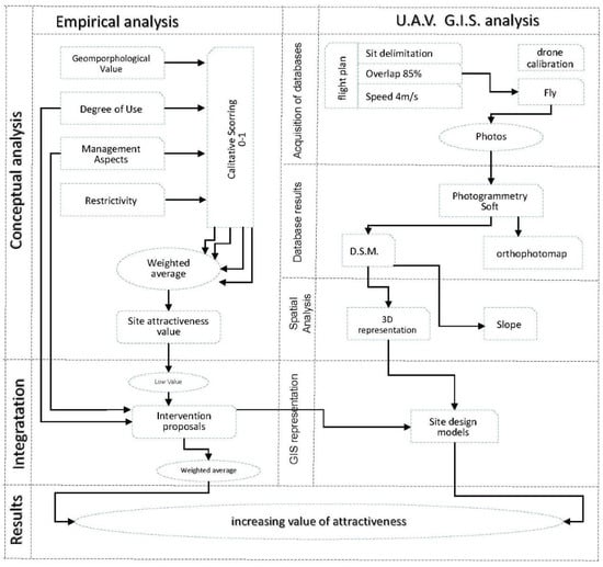 The acquired data were processed in a GIS laboratory, providing the needed information for the projection of the geomorphosite evolution, the identification of vulnerable areas associated with risk processes, and 3D surveys that allowed the drawing up of morphotourist maps and of the proposals for tourism development to highlight the site and to achieve its sustainable development (Figure 3).