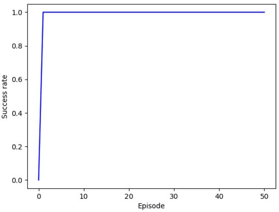 In the case of training the SAC-based path planning agent, the entire procedure is exactly the same as in the simulation-based case study. Figure 11 and Figure 12 show the success ratio and reward history, respectively. The graph shows faster learning ability and convergence than the results in Figure 7 and Figure 8 because we learned in an obstacle environment that moves only on the y-axis according to the experiment. From the success ratio and reward, it can be seen that the SAC-based path planning agent’s learning ends successfully.
