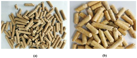 Biomass pellet: (a) d0 = 6 mm, (b) d0 = 8 mm.