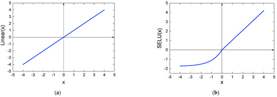 Linear and SELU activation functions: (a) Linear activation functions; (b) SELU activation functions.