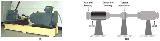 The motor-bearing test bench of CWRU: (a) real-life diagram of test rig; (b) structure schematic diagram of test rig.