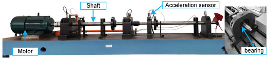 As in Section 4.1, the presented 1DCNN-L2SVM has achieved high identification accuracy for the minority class samples on the CWRU-bearing datasets, but the validity of the model in reality still needs to be further studied. Therefore, in this section, we use a comprehensive experimental bench from Wuxi Houde Automation Meter Co., Ltd. (Wuxi, China) to collect unbalanced datasets at four different rotational speeds for experiments. As shown in Figure 9, the experimental bench is composed of a motor, coupling, a mass block, a shaft, an acceleration sensor, an experiment bearing (NSK6308), an eddy current sensor, and other devices. Among them, the shaft is a cylindrical object passing through the middle of a bearing. It supports rotating parts and rotates with them to transmit motion, torque, or bending moment. The acceleration sensor is usually composed of a mass block, a damper, an elastic element, a sensing element, and an adaptive circuit. It is mainly used to measure the vibration signal of bearings. In the experiment, the normal bearing and four kinds of fault bearings were installed on the experiment bench successively, and the acceleration sensor (HD-YD232) was the collection component of the bearing vibration signals in different states. Its sampling frequency is 8 kHz.